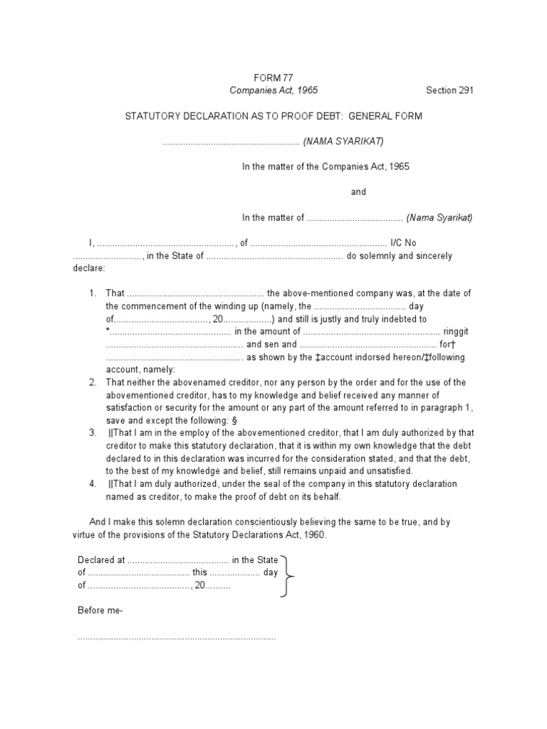 Form 77 Statutory Declaration As To Proof Of Debt General Form Pdf Business Law Private Law